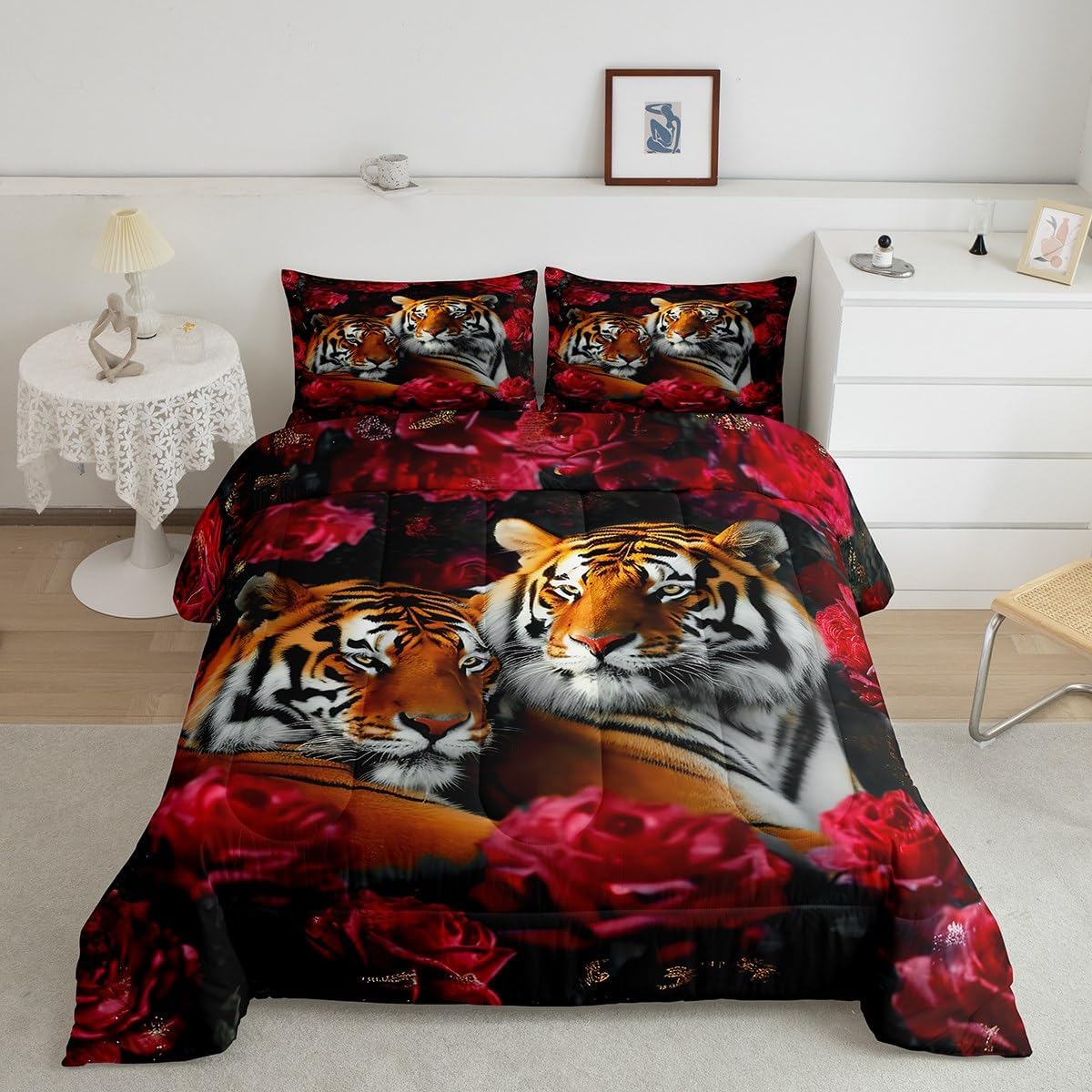 Package Include: Comforter and Pillowcase. Makeover your bedrooms every season with our Comforter sets. Perfect item for your room, girls boys youth room, master bedroom. Size Information: Twin size down comforter 68"W x 90"L and 1 pillow case 30"W x 20"L. 2pcs with 1 Bed Comforter and 1 Pillowcases in A Bag Full size down comforter 79"W x 90"L and 2 pillow cases 30"W x 20"L. 3pcs with 1 Bed Comforter and 2 Pillowcases in A Bag Queen size down comforter 90"W x 90"L and 2 pillow cases 30"W x 20"L. 3pcs with 1 Bed Comforter and 2 Pillowcases in A Bag King size down comforter 104"W x 90"L and 2 pillow cases 36"W x 20"L. 3pcs with 1 Bed Comforter and 2 Pillowcases in A Bag Useful and practical A luxurious product for homes, dorm rooms, hotels, guest rooms. Practical to use for being polyester, feels like cotton which is Super Soft and Breathable. No chemicals used, No dye substance harming the health of you or your family. Unique design: Vivid Colors won't fade thanks to new 3D digital printing methods. These unique designs match well with various color palettes of your rugs, curtains, headboard, furniture, and all other decor accessories. Personalized: As manufacturers of digital printed home textiles, we follow current trends and bring you the latest home fashion. More Decor: Search our store to get more christmas theme, new year theme, autumn fall theme, any holiday theme, modern abstract, farmhouse rustic theme, simple pattern, garden flowers etc. home decoration. Warm Tips: 1. Please allow 1-3cm error due to manual measurement. 2. Actual color may vary from the color on your screen due to monitor color restrictions.