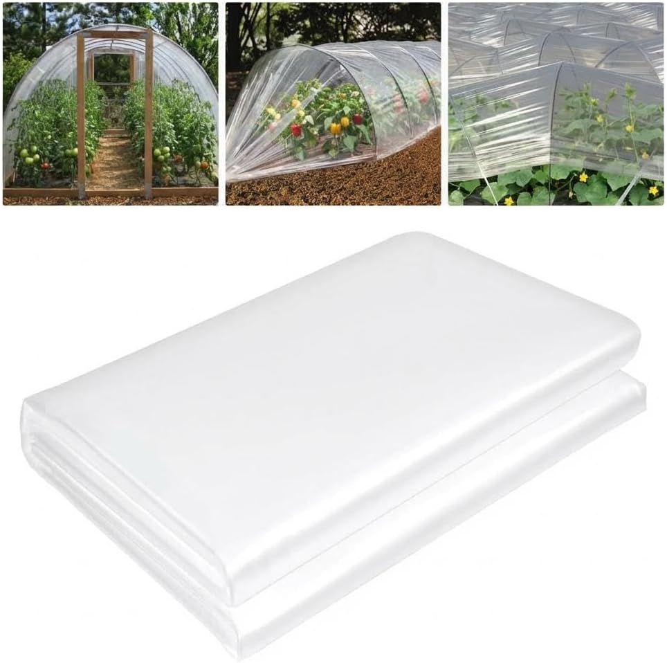 Upgrade your gardening and agricultural protection with our Heavy Duty 6 Mil Clear Greenhouse Plastic Sheeting, the premium UV resistant polyethylene film designed to deliver reliable year-round performance for greenhouses, gardens, farms, and more. Engineered from high-quality LDPE material, this weatherproof protection tarp combines exceptional durability, high light transmission, excellent thermal insulation, and versatile functionality to create the optimal growing environment for plants while serving a wide range of practical applications. Whether you’re a professional farmer, avid gardener, or DIY enthusiast, this heavy-duty plastic film provides superior protection and performance you can trust.Crafted from premium 6 Mil LDPE material, this durable greenhouse film offers robust year-round protection against harmful UV rays, frost, wind, rain, and other harsh weather conditions. The heavy-duty construction resists aging, yellowing, and cracking caused by prolonged sun exposure, ensuring long-lasting durability and reliable performance in outdoor environments. This superior weatherproof protection safeguards your plants, crops, and property effectively, making it an essential covering solution for all gardening and agricultural needs.Experience optimal plant growth with the high light transmission and thermal insulation properties of this clear polyethylene film. Allowing up to 90% of sunlight to pass through, it maximizes photosynthesis and promotes healthy, vigorous plant development. Meanwhile, its excellent thermal retention capabilities stabilize greenhouse temperatures, reducing heat loss during cold nights and maintaining a consistent growing environment. This ideal combination of light transmission and insulation significantly boosts crop yield and quality for all types of plants.