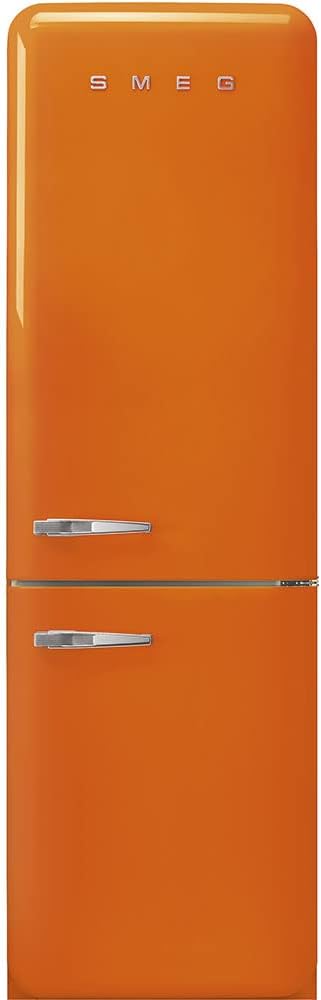 Bring vintage charm and high-performance cooling to your kitchen with the SMEG FAB32 Retro Refrigerator-Freezer, crafted in Italy. Featuring a total capacity of 12.20 cu ft, including a 3.99 cu ft frost-free bottom freezer, it combines SMEG’s signature 1950s style with advanced functionality. The refrigerator section includes adjustable glass shelves, chrome-trimmed balconies, an egg tray, and a fruit and vegetable drawer. A LifePlus Zone drawer maintains 28°F–37°F, ideal for meats, cheeses, and seafood. Bright LED side lighting offers energy-efficient visibility, while a multi-airflow cooling system ensures even temperature distribution. The freezer features three drawers and one ice box, with No-Frost technology eliminating manual defrosting. Dual thermostats with a digital LED display allow precise, independent temperature control for each compartment. Dimensions: 28.687" D × 23.687" W × 77.5" H. Before purchasing, please measure your space and doorways to confirm a proper fit during delivery. Complete your kitchen with SMEG’s 50’s Retro Style Collection, including matching toasters, coffee makers, blenders, kettles, and more—crafted with the same Made in Italy quality and iconic design.