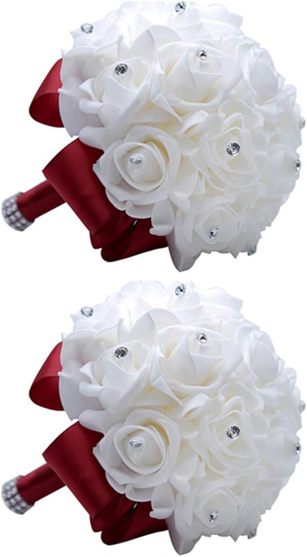 The bride bouquet consists of many delicate foam roses. Each rose has a rhinestones on it. The handle is surrounded by rows of crystals and the soft silk ribbon can perfectly show the elegance of the bride.This wedding bouquet is perfect for wedding, party , church, office decoration, room decor, reception centerpieces.