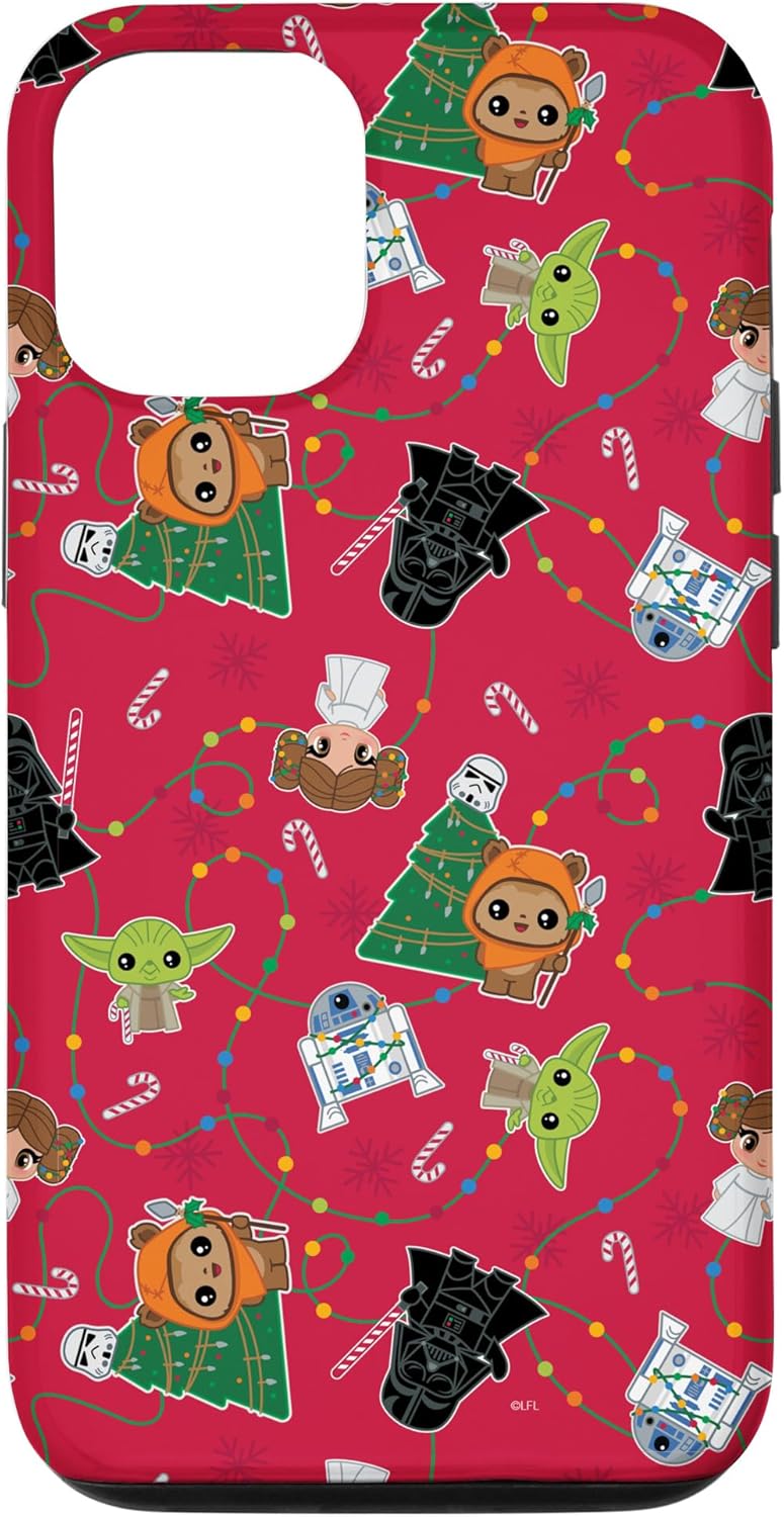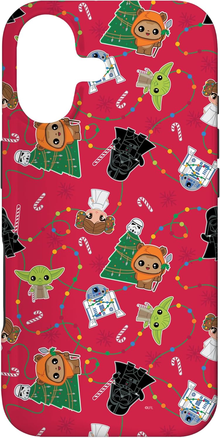 Have a merry Christmas from a galaxy far, far away while you protect your iPhone or Samsung cell phone with this sturdy official Lucasfilm case, featuring incredibly cute images of classic Star Wars characters like Darth Vader, Princess Leia, R2-D2, Yoda, and Wicket W. Warrick the Ewok, surrounded by festive holiday icons like snowflakes, candy canes, colorful Christmas lights, and Christmas trees with Imperial Stormtrooper helmet toppers. A great (and adorable) Christmas gift for a Star Wars fan, perfect for a holiday trip to Galaxy’s Edge at Disneyland or Walt Disney World! Available for the following iPhone and Samsung models: iPhone 14, iPhone 14 Plus, iPhone 14 Pro, iPhone 14 Pro Max, iPhone 13, iPhone 13 Pro, iPhone 13 Pro Max, iPhone SE (2020), iPhone 7, iPhone 8, iPhone 11, iPhone 11 Pro, iPhone 11 Pro Max, iPhone 12/12 Pro, iPhone 12 Mini, iPhone 12 Pro Max, iPhone X/XS, iPhone XS Max, iPhone XR, iPhone 7/8, iPhone 7 Plus/8 Plus, Galaxy S20, Galaxy S20+, Galaxy S20 Ultra, Galaxy S10, Galaxy S10+, Galaxy S10e, Galaxy S9, Galaxy S9+, Galaxy S8, Galaxy S8+.