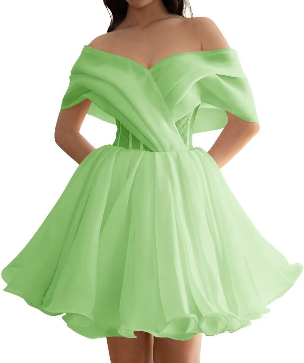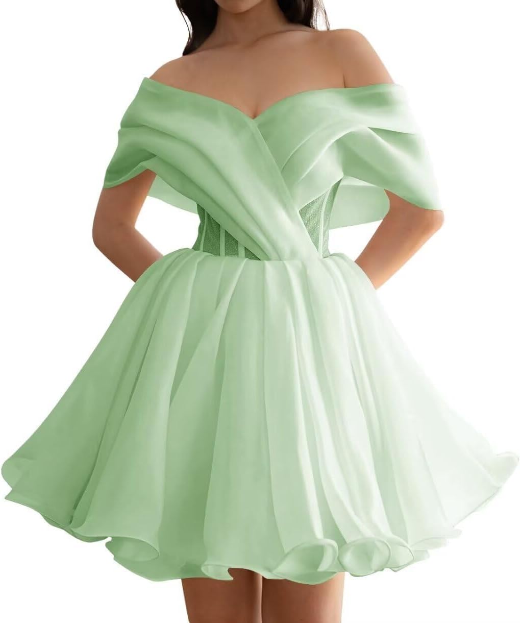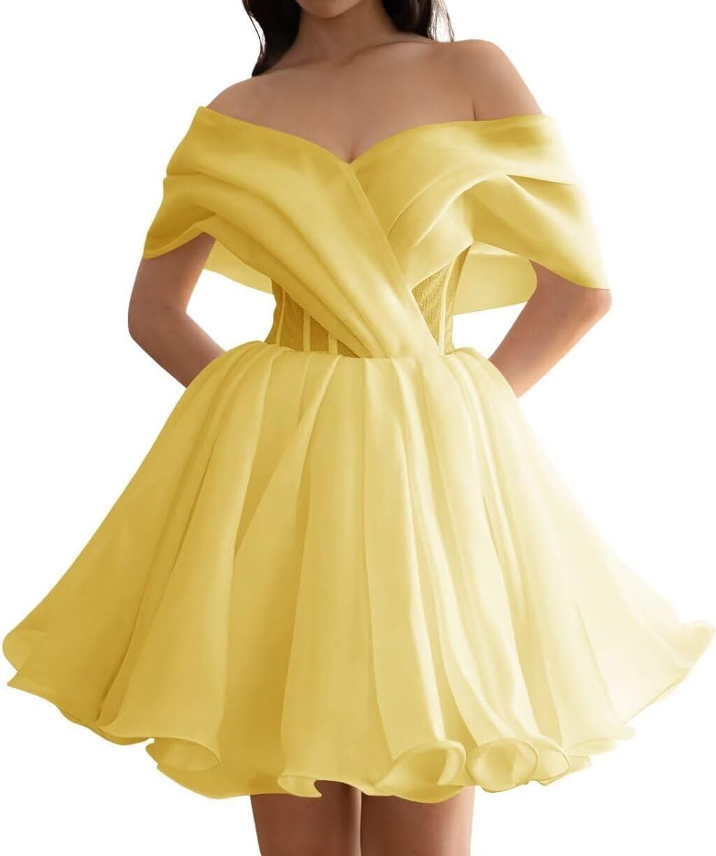 Women's Short Wedding Dresses Off Shoulder Ruffle Bride Party Gown Tulle Short Mini Prom Dresses Fabric: Tulle Silhouette:A Line Decoration:Off Shoulder Closure:Drawstring Customization is available. If you are not sure about your size, Please send us your actual measurements, the measurements details as below: 1.Bust = ___inches. 2.Waist= ___inches. 3.Hips = ___inches. 4.Hollow to floor=___inches. 5.Your height=___inches. Warm notice: 1. The real color of the Prom Dress may be slightly different from the pictures shown on website caused by many factors such as brightness of your monitor and light brightness. 2. Please allow slight manual measurement deviation for the data. All weights and dimensions are approximate value. 3. Size is the manual measurement, because of the different measurement methods for each person , there may be errors 1-3cm.